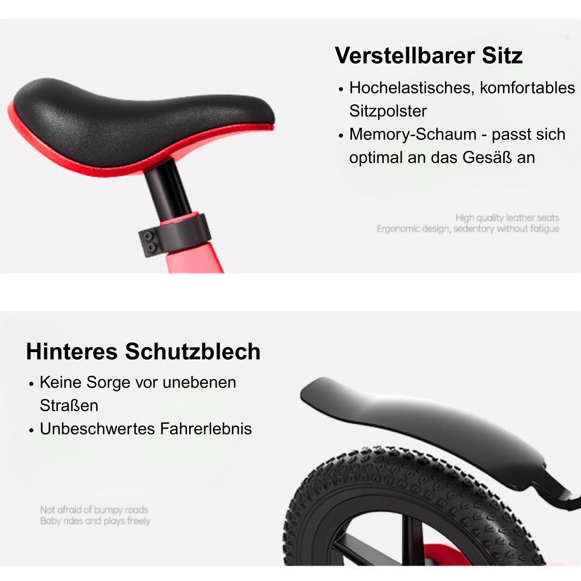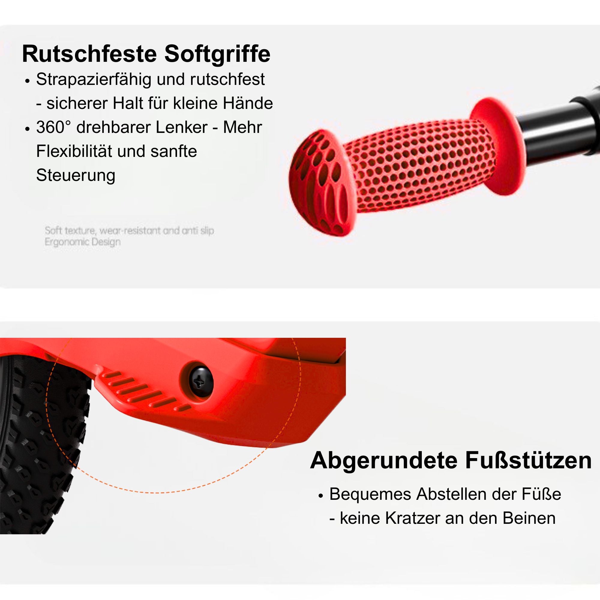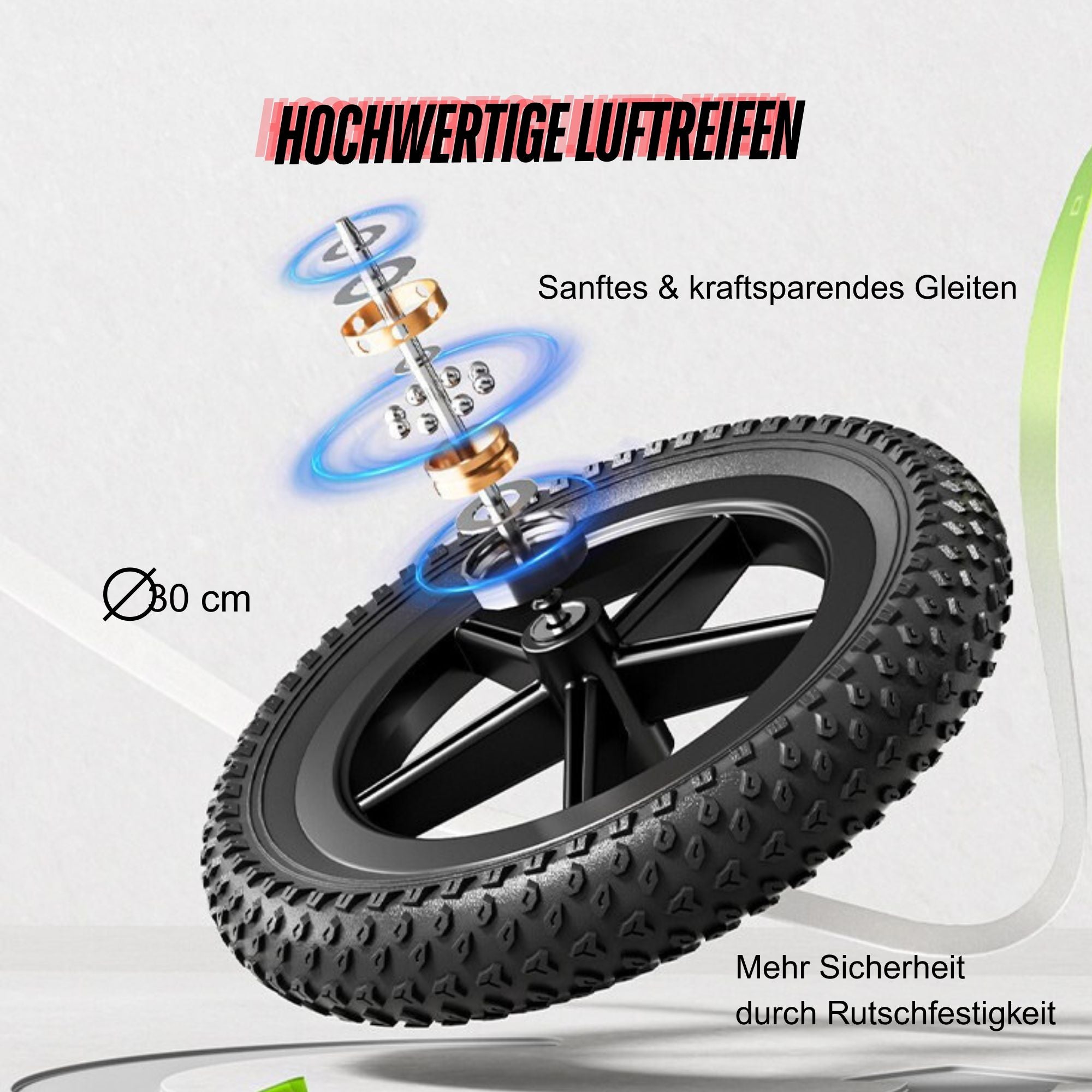 - 🚲 12 Zoll Gummiluftreifen für bessere Stoßdämpfung und sicheren Grip