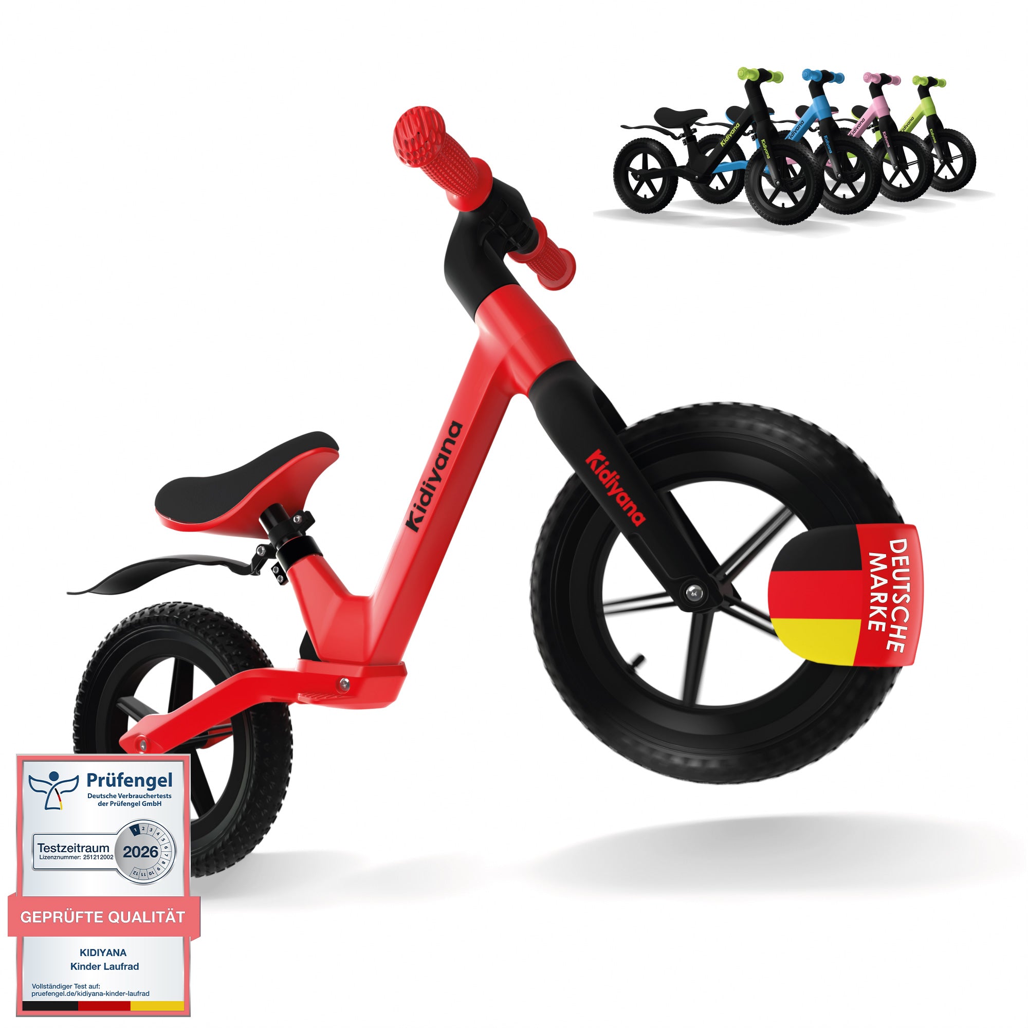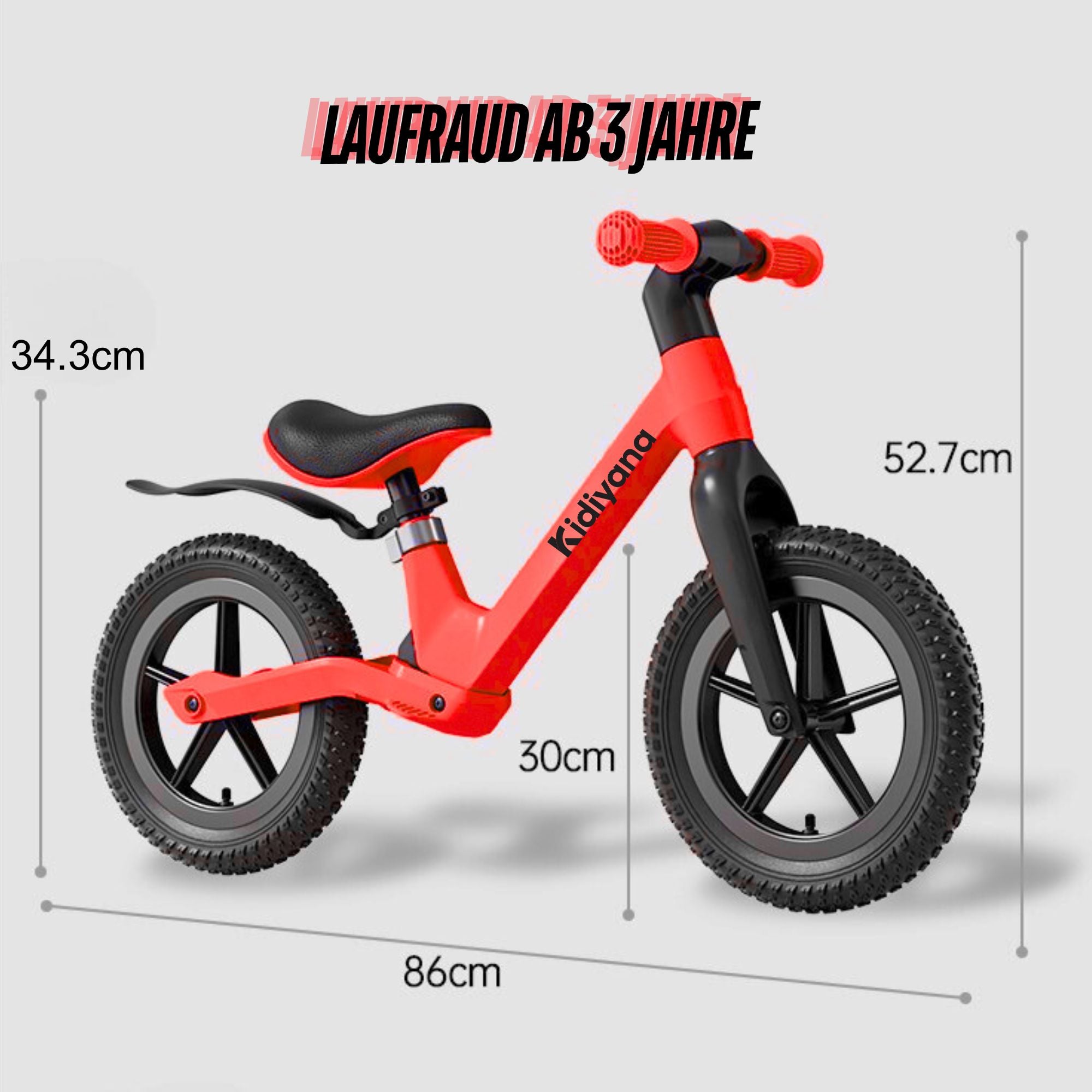 Kidiyana 12 Zoll Laufrad Rot – Kinder Balance Bike mit Gummiluftreifen & stabilem Nylonrahmen ab 3 Jahren