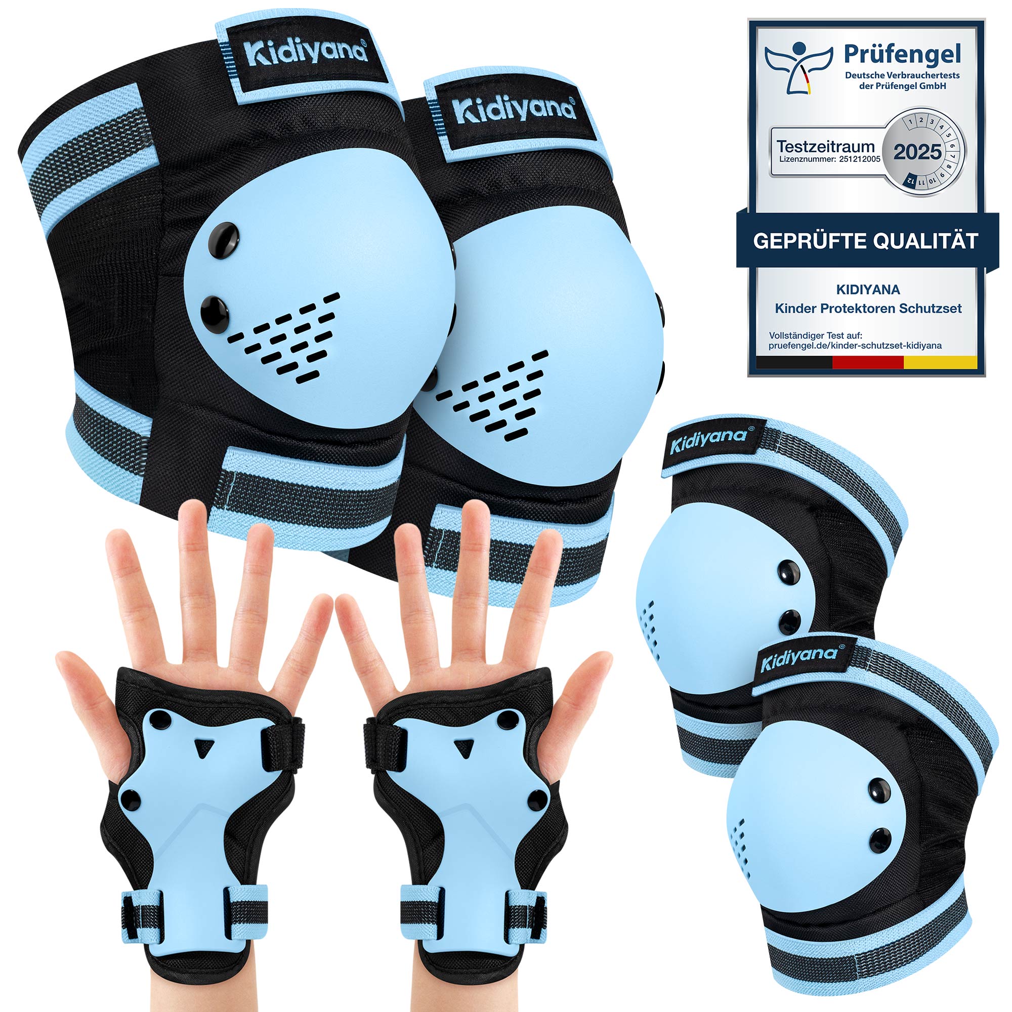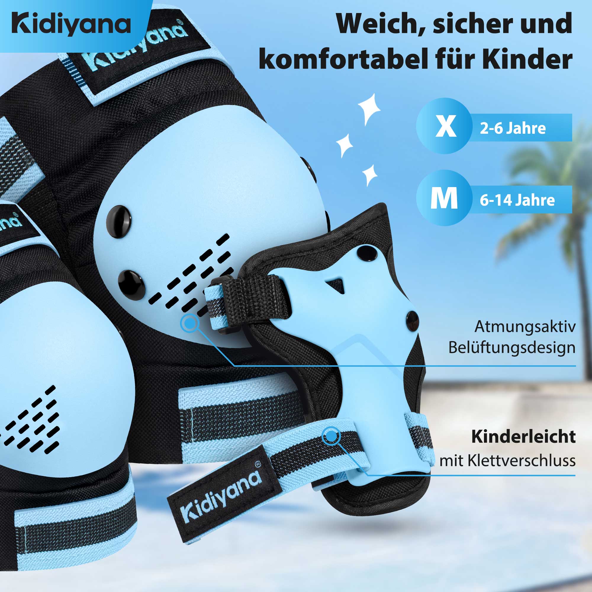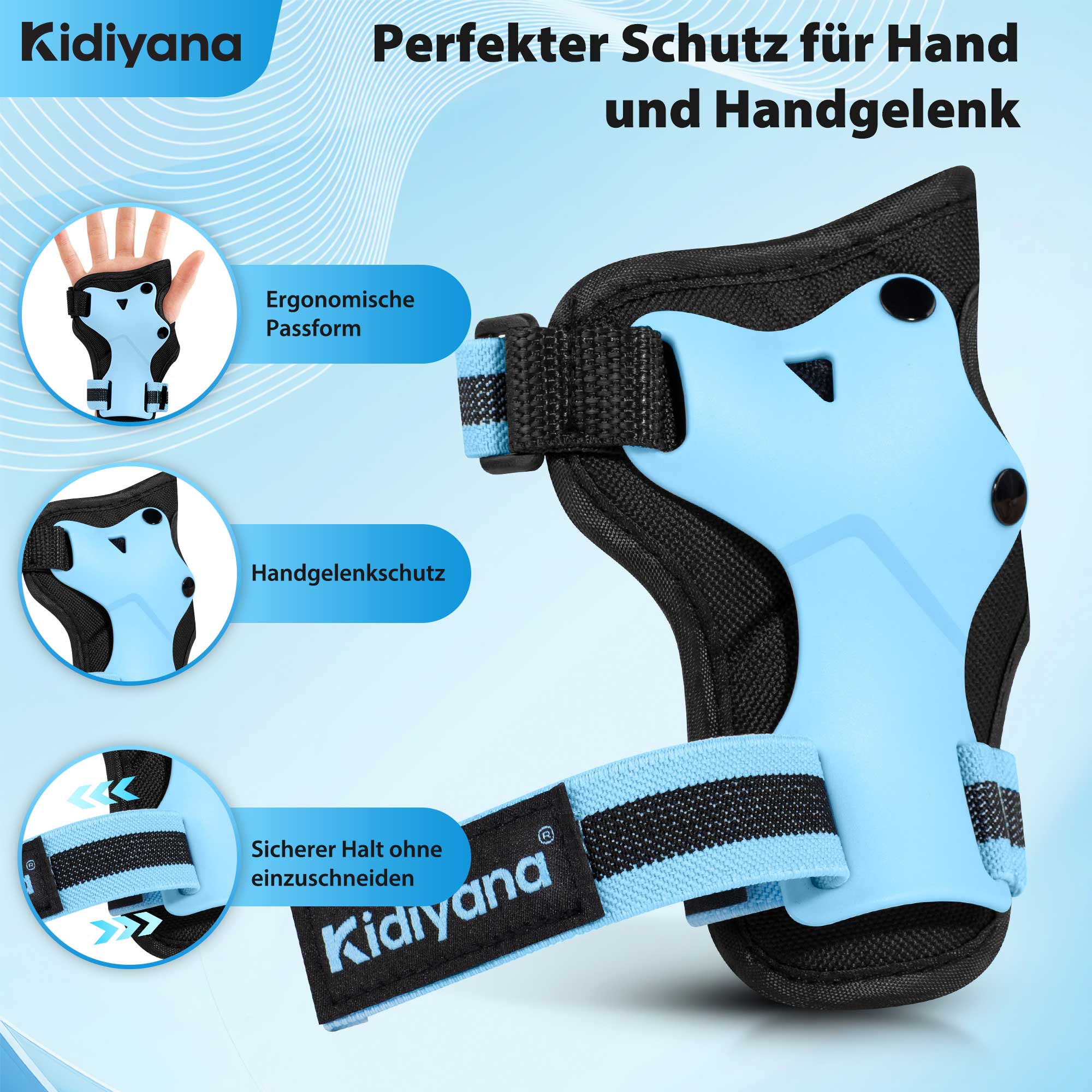Kidiyana Kinder Schutzausrüstung Blau S – Schutzset mit Knie-, Ellenbogen- und Handgelenkschonern für Kinder von 3 bis 6 Jahren