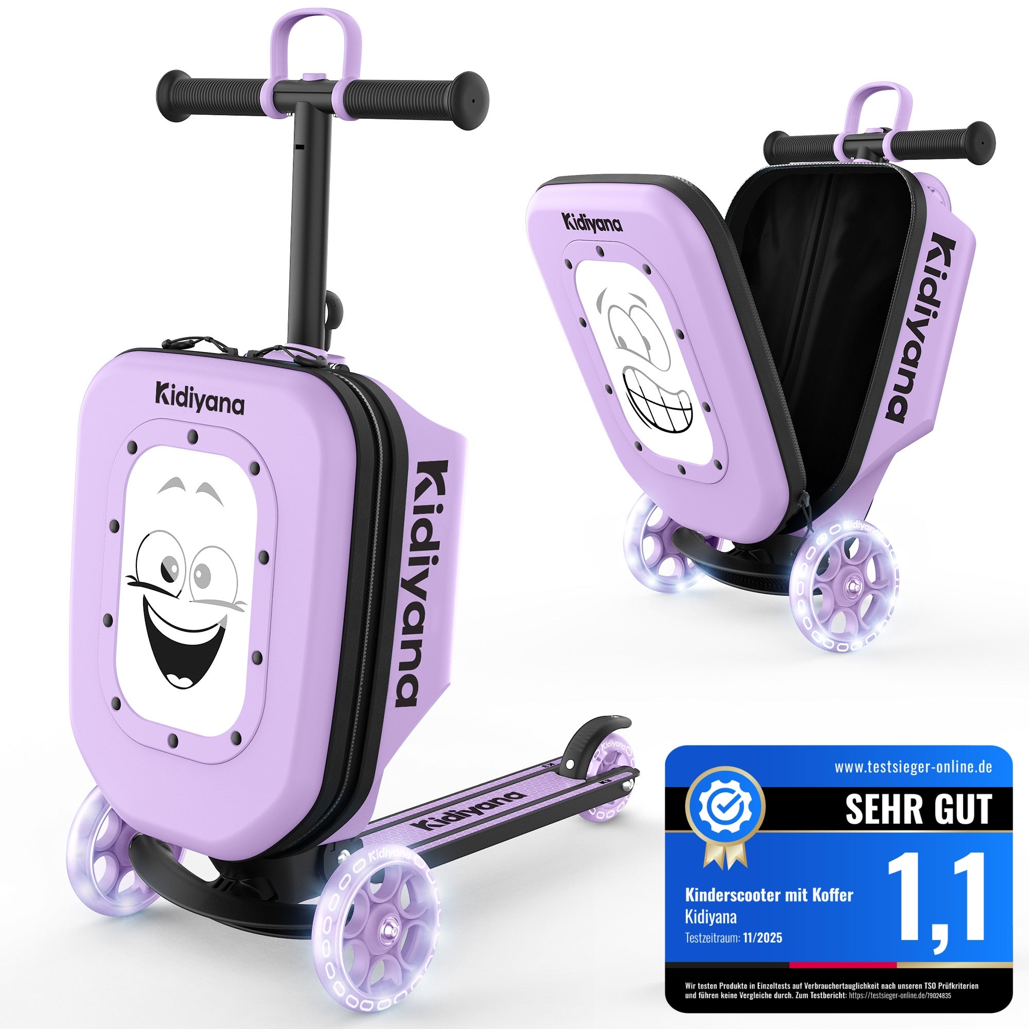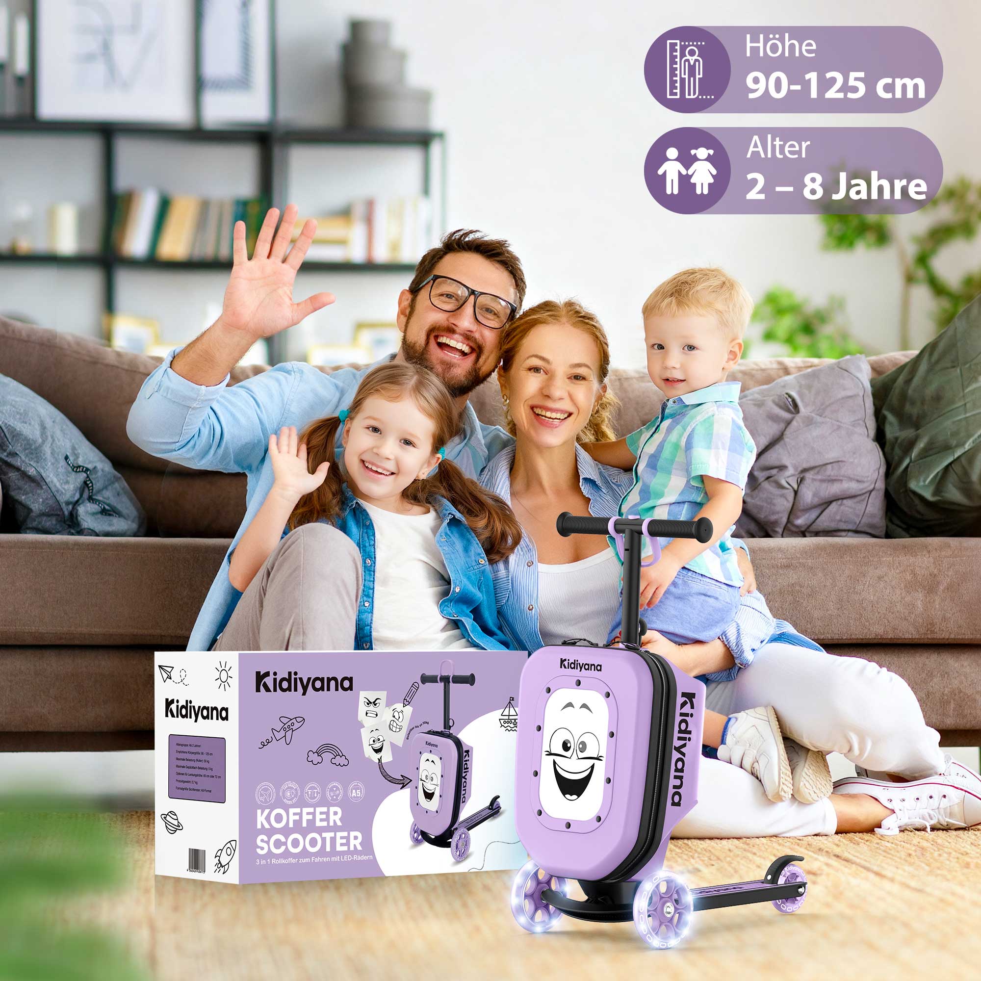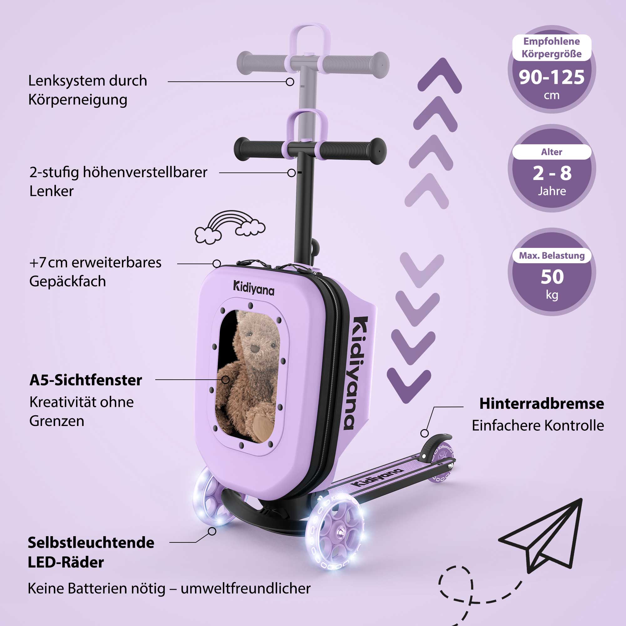 Kidiyana Kinderroller mit Koffer – Stabiler 3-Rad Scooter, höhenverstellbar – Lila