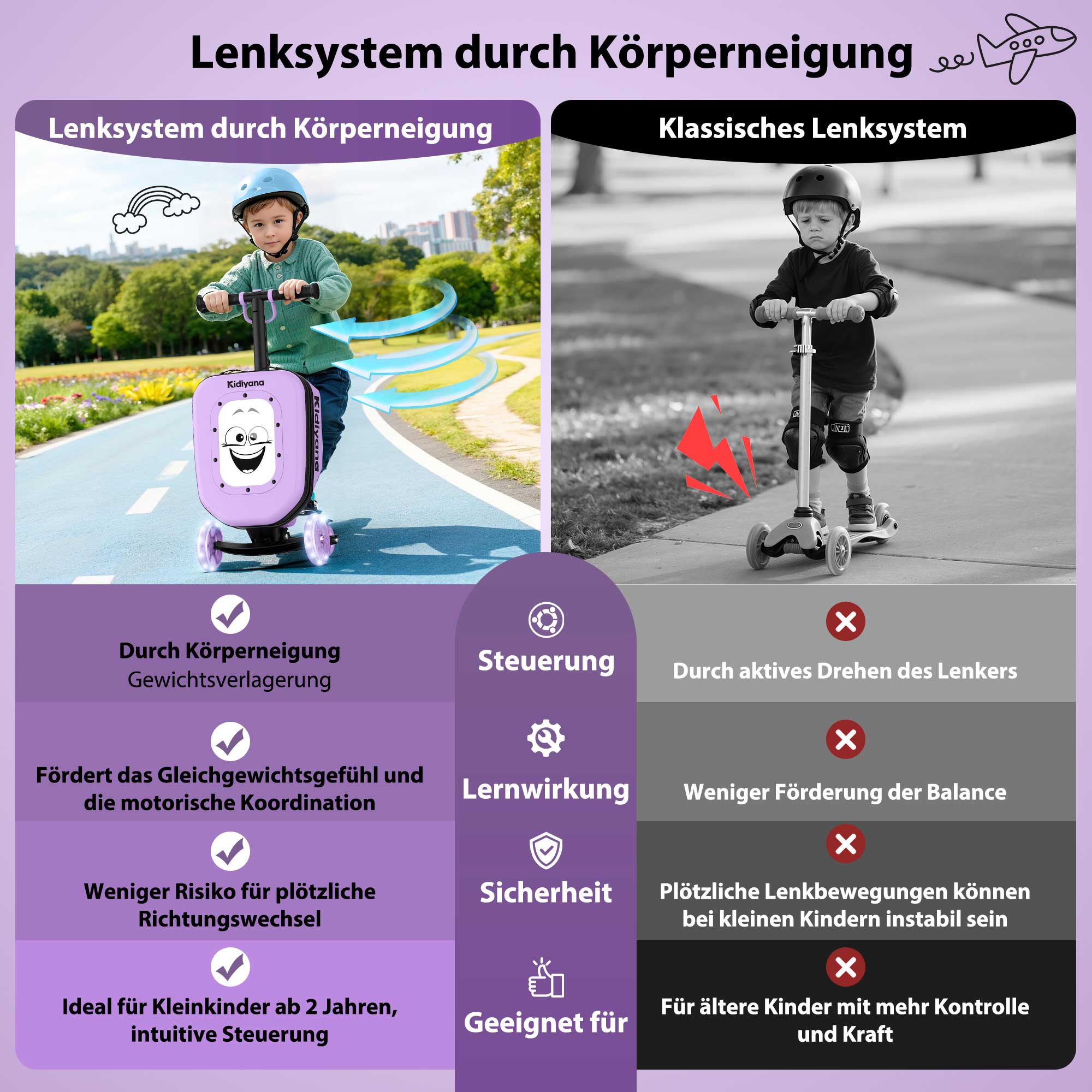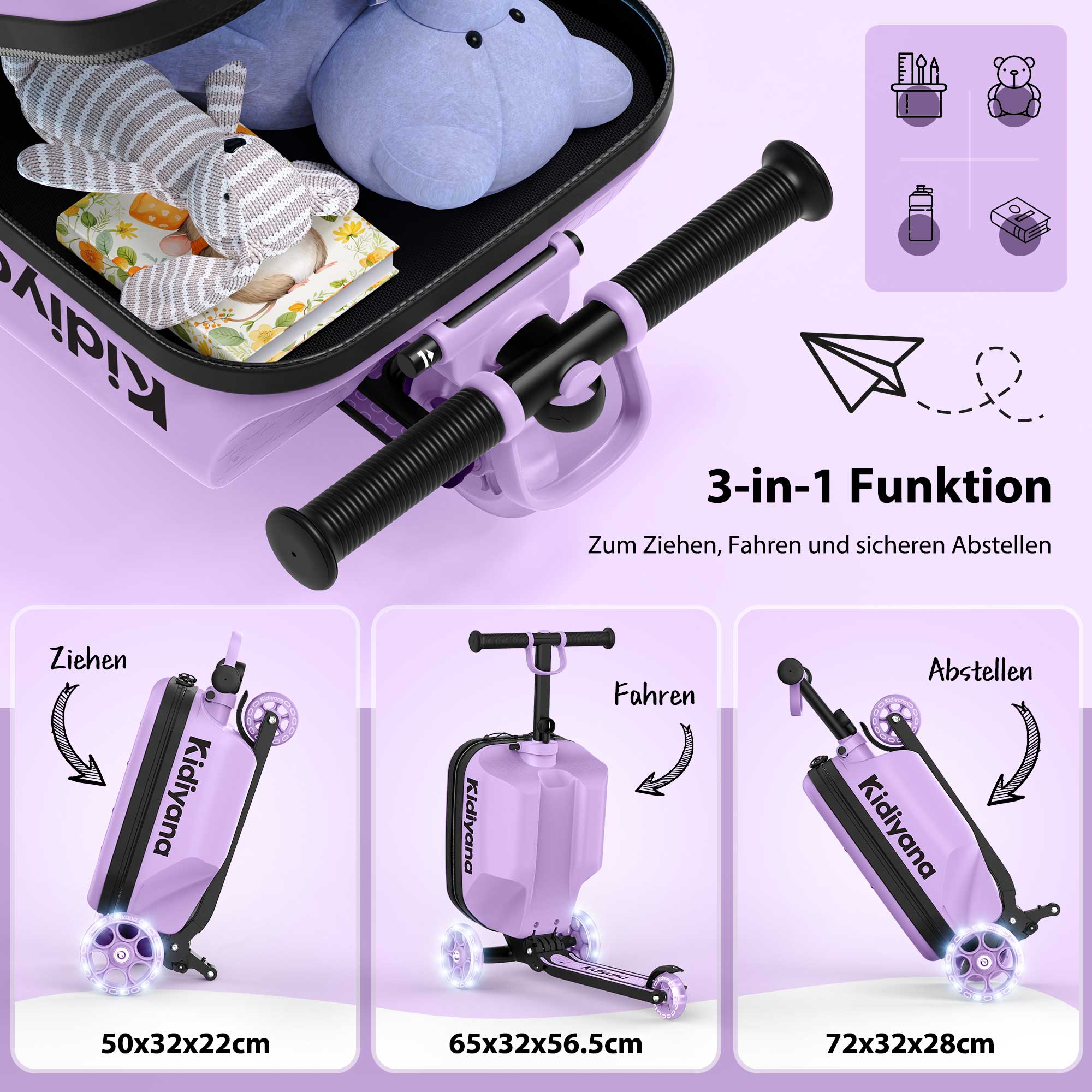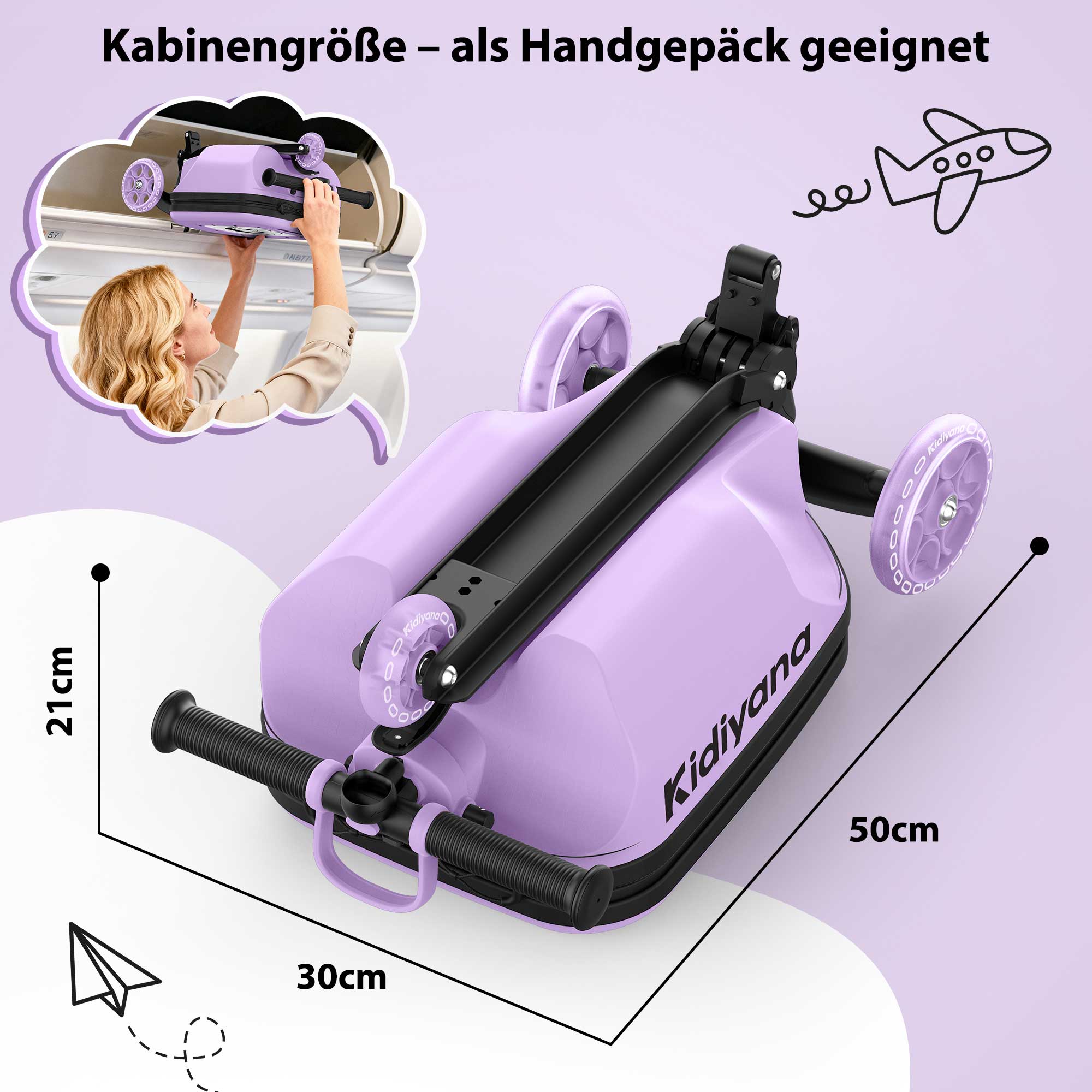 Kidiyana Kinderroller mit Koffer – Stabiler 3-Rad Scooter, höhenverstellbar – Lila